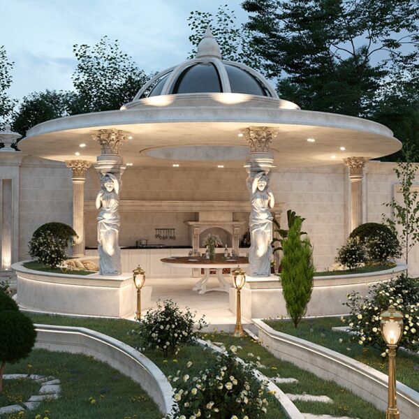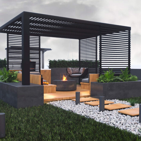 • روف گاردن با فلاور باکس، آب نما ها و آلاچیق های مسقف و مبلمان شده به همراه آشپزخانه ی فرنیش